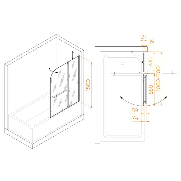 Стеклянная Шторка на ванну RGW SC-03 - это стильное и практичное решение для вашей ванной комна... Подробнее