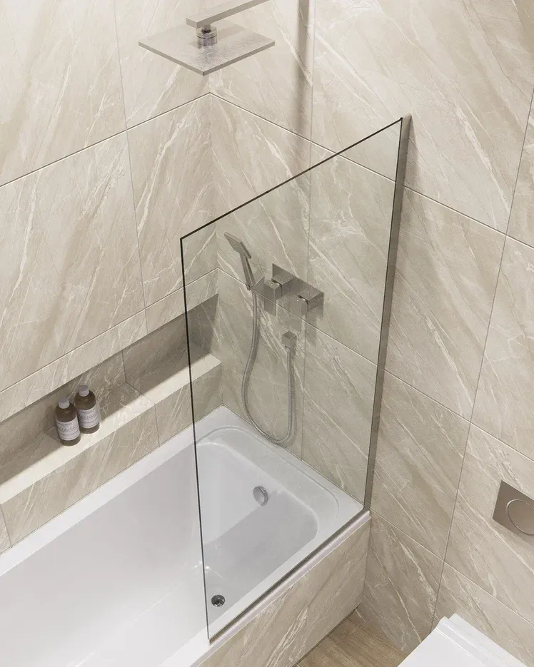 Шторка на ванну в профиле by Deonria C-140-60-8-T-HM 60см хром матовый/прозрачный купить