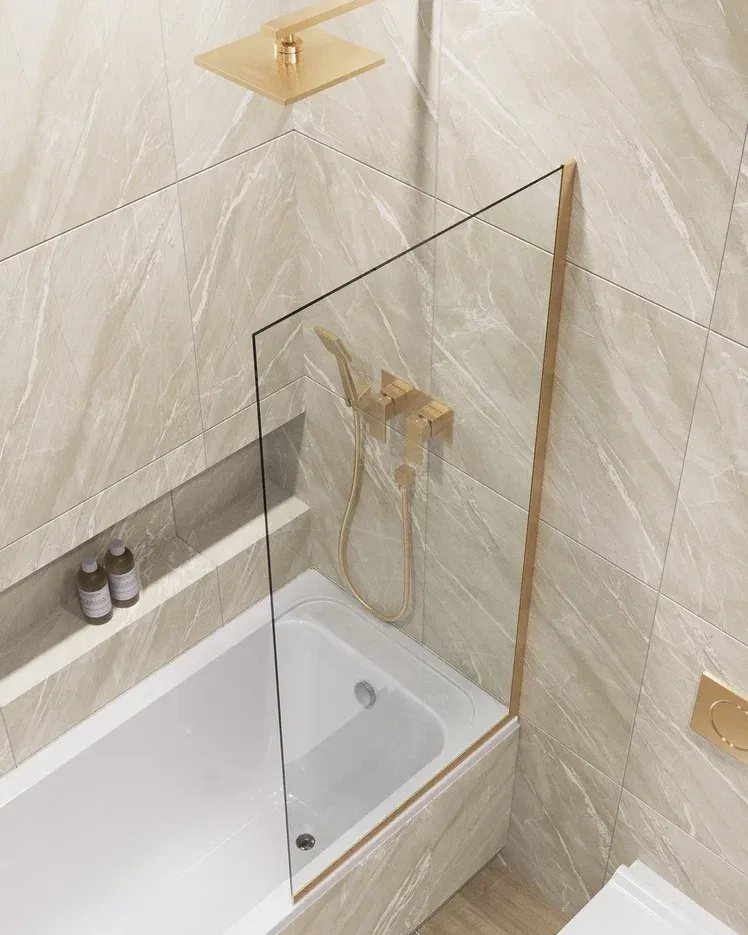 Шторка на ванну в профиле by Deonria C-140-70-8-T-G 70см золото/прозрачный купить