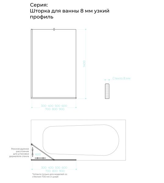 Закаленное стекло, цвет Бесцветный, толщина 8 мм 1400х600 мм - 1 шт.