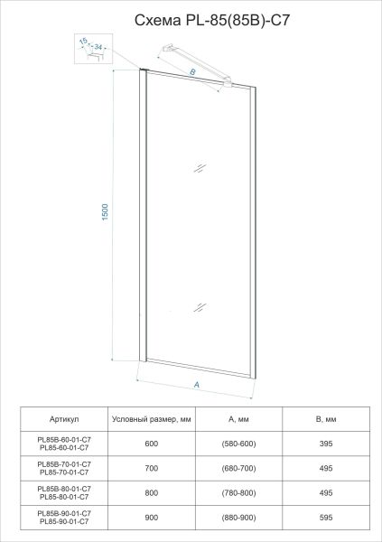 Шторка на ванну Veconi Palau PL-85, 700x1500, хром, стекло прозрачное купить