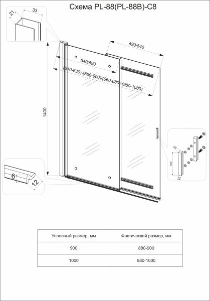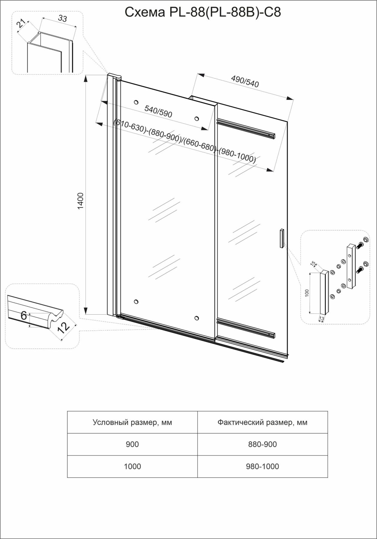 Шторка на ванну Veconi Palau PL-88CH, 1000x1400, хром, стекло прозрачное купить