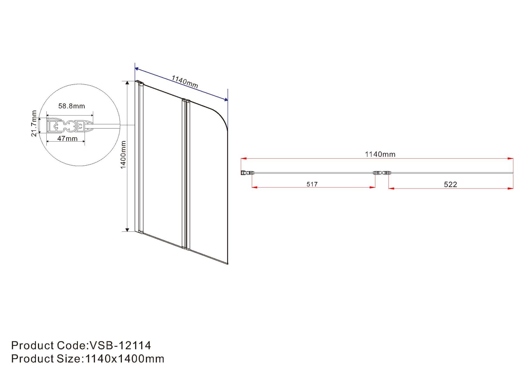 Описание Vincea VSB-12114CLBДушевая шторка на ванну Vincea 114 x 140 см, стекло прозрачное, профиль черный, VSB-12114CLBРазмер:1140×1400