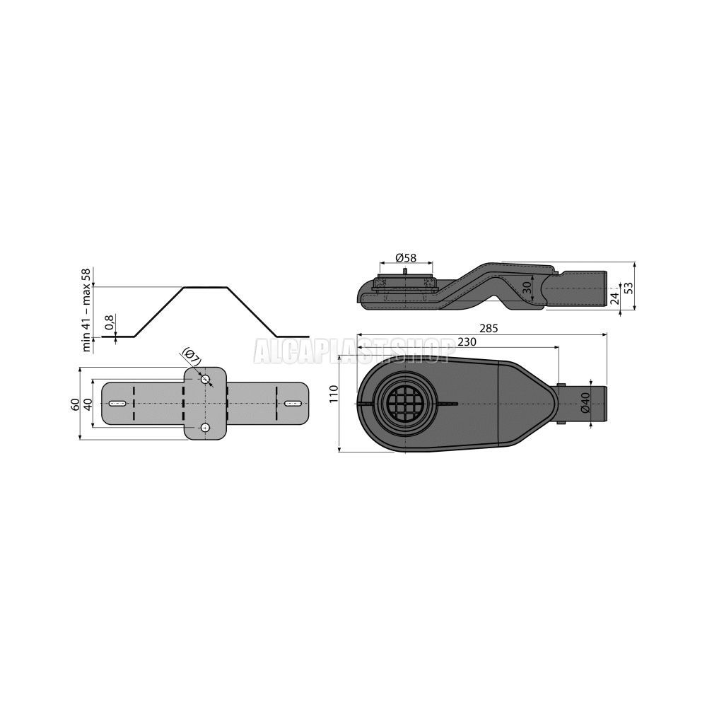 Сифон AlcaPlast DN40 экстра низкий и комплект регулируемых но APZ-S6
