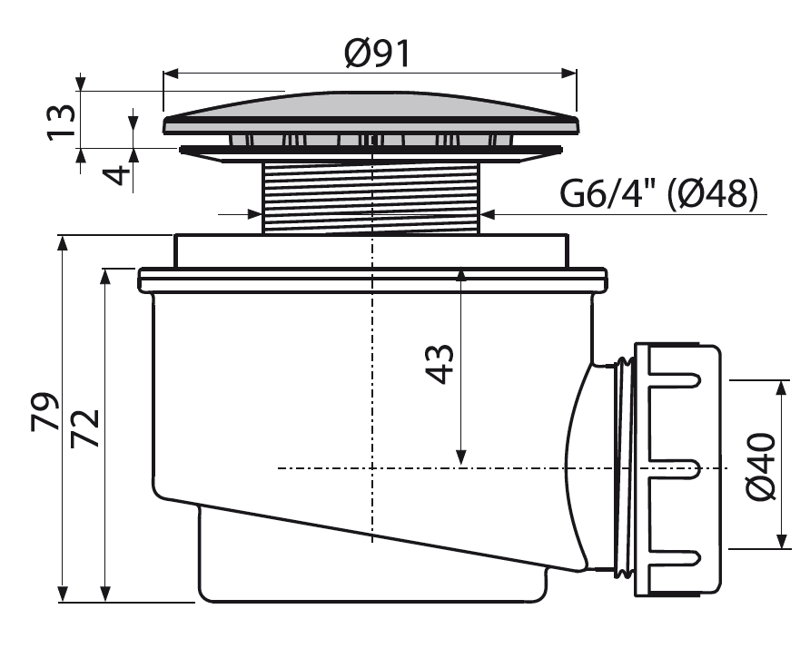 - Для душевых поддонов со сливным отверстием Ø60 мм