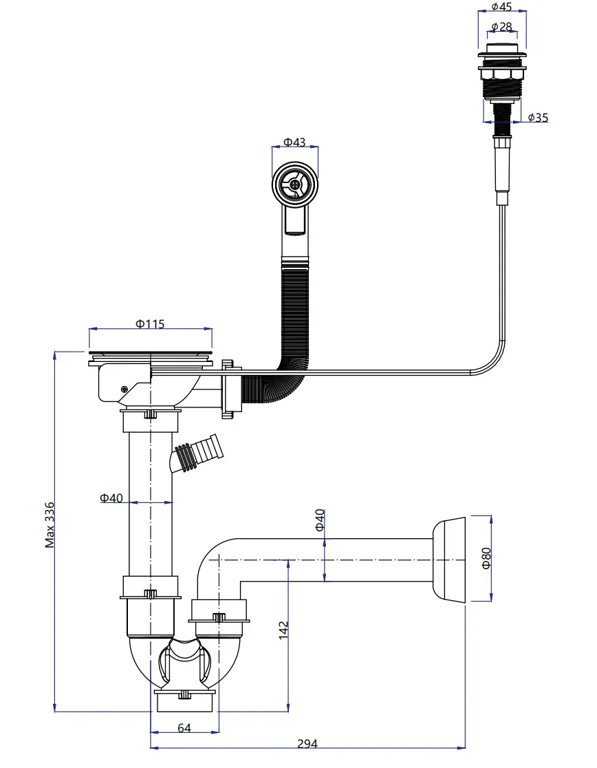 Сифон для мойки GranFest 13PB2-P2 павт черн Подробнее