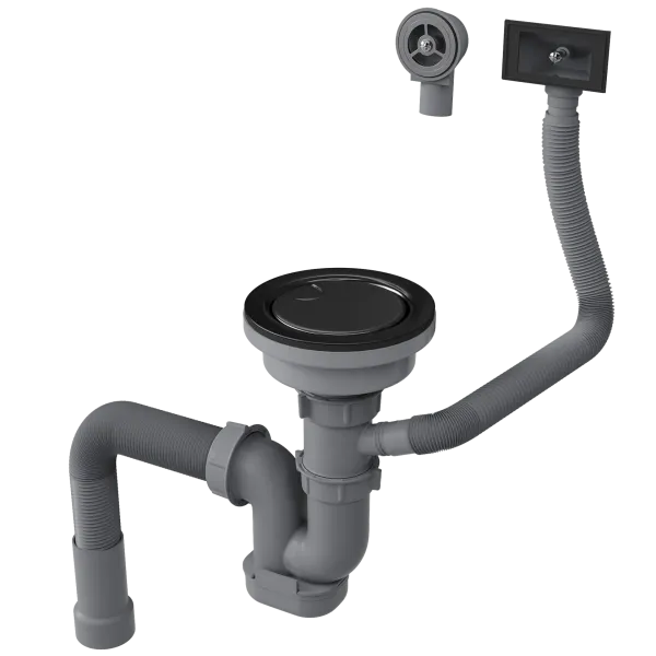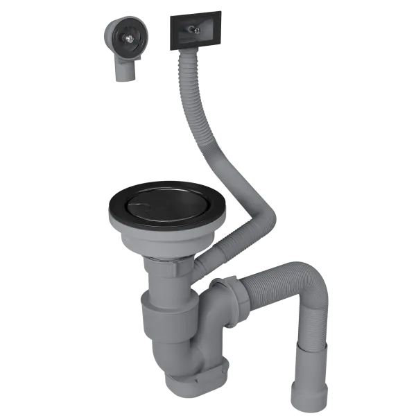 Сифон для одночашевой кухонной мойки с выпуском Reflexion Arno RX3001BL оружейная сталь
