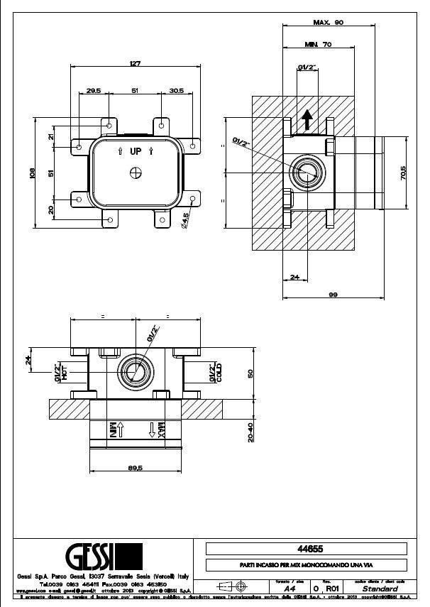 Скрытая часть однорычажного смесителя Gessi 44655.031