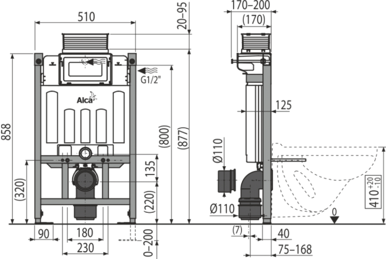 Скрытая система инсталляции AlcaPlast для сухой установки (для гипсокартона) Sadroмodul AM118/850