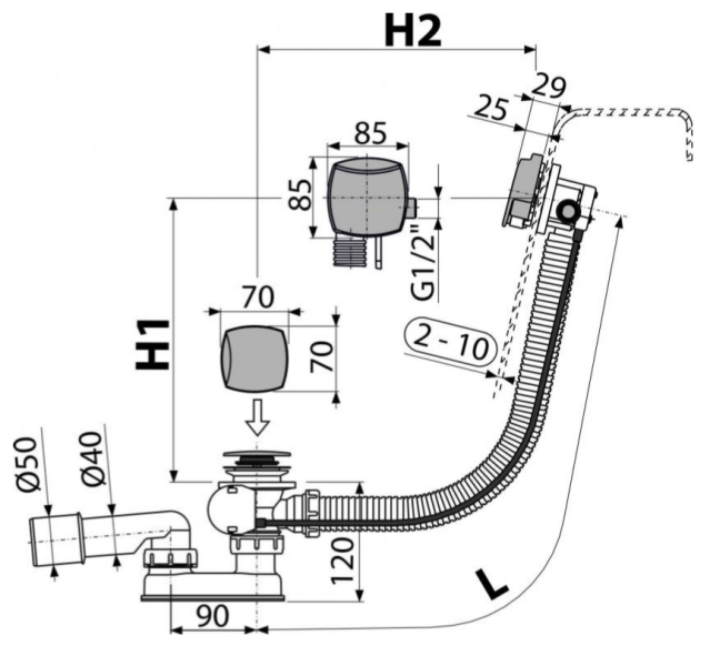 Слив-перелив для ванны AlcaPlast с напуском воды через перелив 57см хром A564KM3 купить