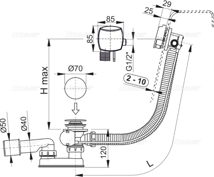 • Для ванн с выпускным отверстием Ø52 мм