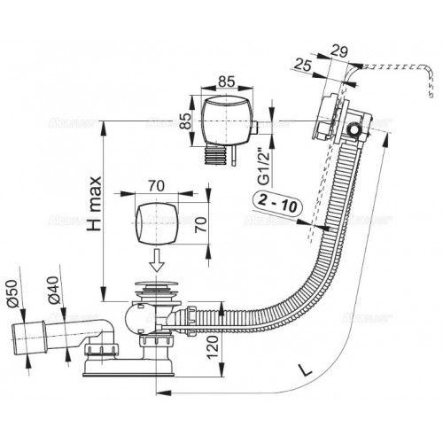 Слив-перелив для ванны AlcaPlast с напуском воды через перелив клик-клак 57см металл-пластик хром A508KM
