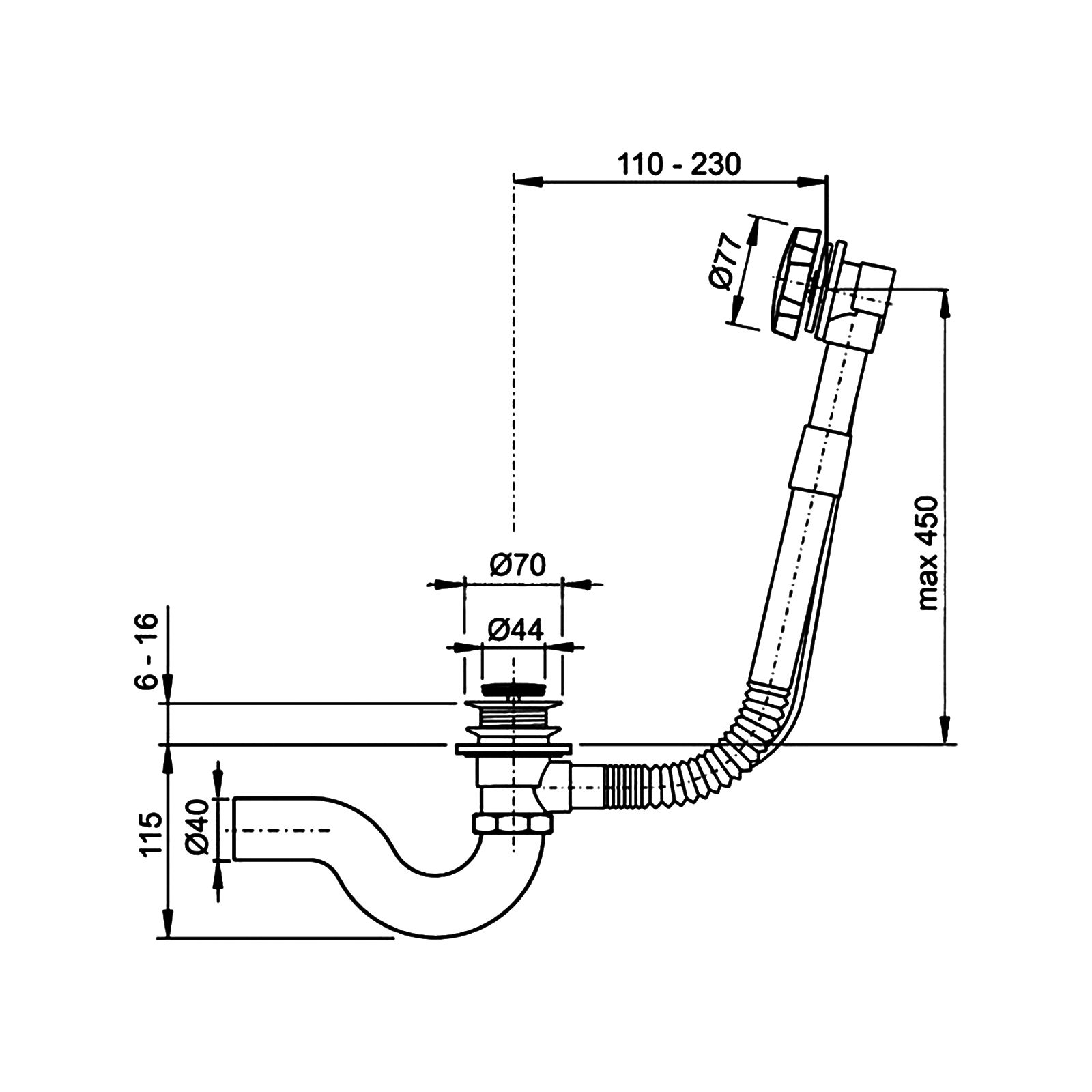 • Корпус слив перелив с раздвижной соединительной трубкой (латунь, медь) - 1 шт.