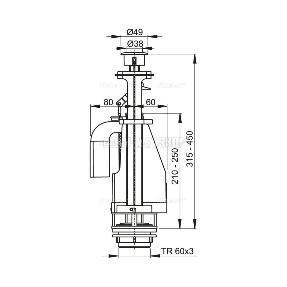 - Конструкция позволяет регулировать высоту механизма в зависимости от высоты бачка