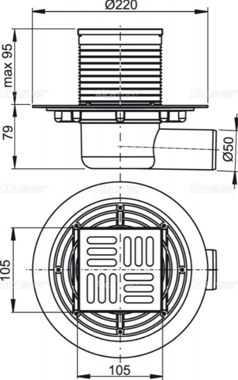 Сливной трап AlcaPlast 105 ? 105/50мм решетка - хром APV1311 купить