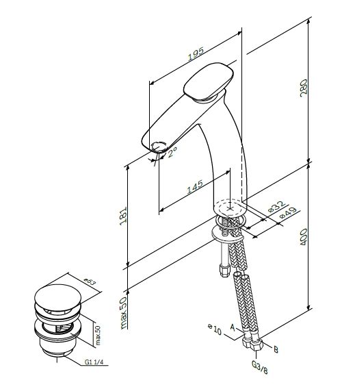 Высота смесителя:28