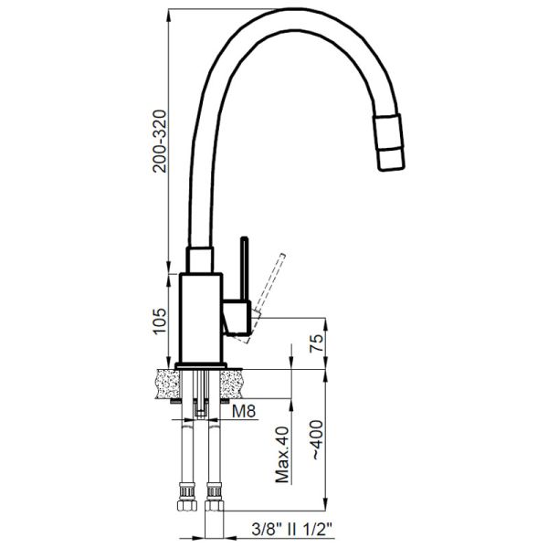 Смеситель для кухни AZARIO TASCO AZ-15494321 с гибким изливом