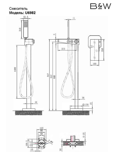 Смеситель Black & White Universe 6982U для ванны и душа купить