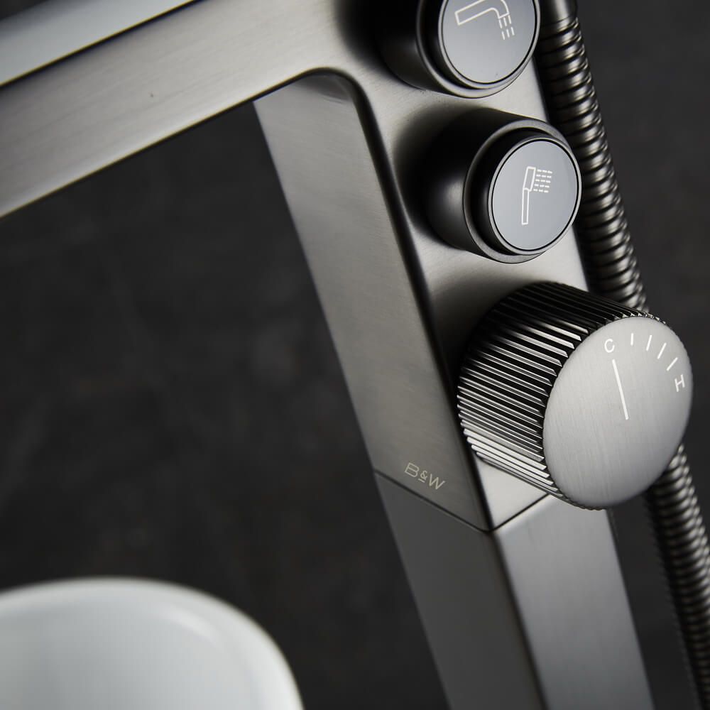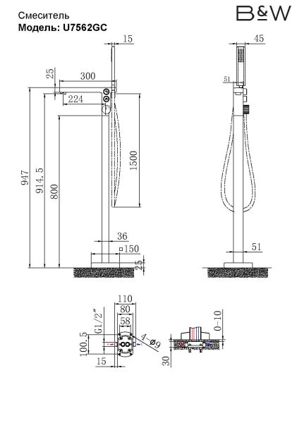Смеситель Black & White Universe 7562GM для ванны и душаИзысканный смеситель для ванной с кнопочным управлением и режимом имитации «Водопад», который позволит Вам каждый день испытывать абсолютно иные ощущения от принятия банных процедур и позволит с головой окунуться в ощущения единения с природой.Использование нестандартных механизмов и материалов — это то, что является отличительной особенностью продукции B&W и способом подарить каждому клиенту уникальные ощущения.Размер 300 х 51 х 947 мм.