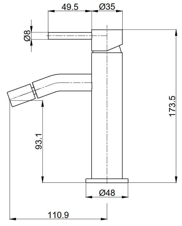 • Высота смесителя: