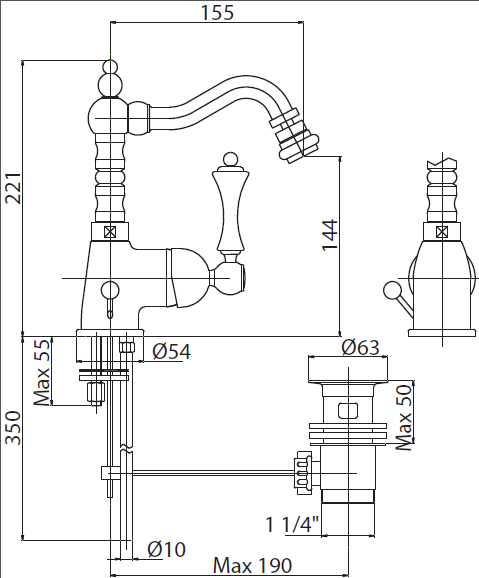 Оснащение: донный клапан, аэратор