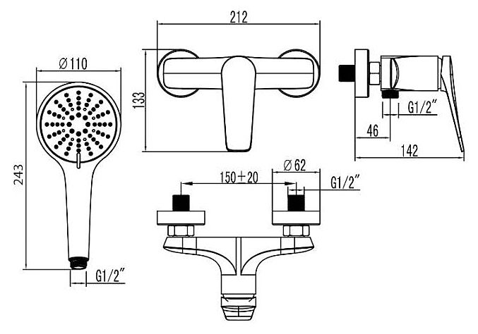 • Стандарт подводки: G 1/2"