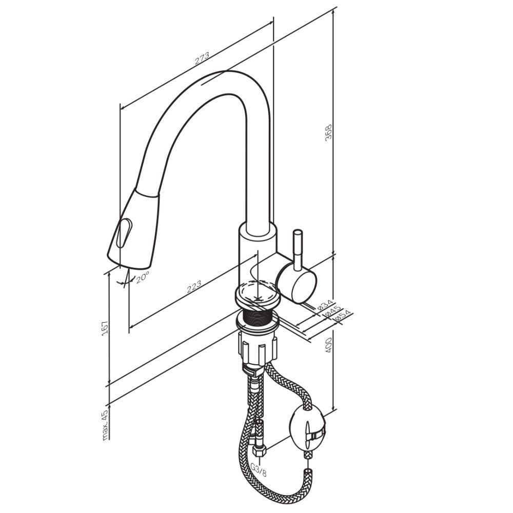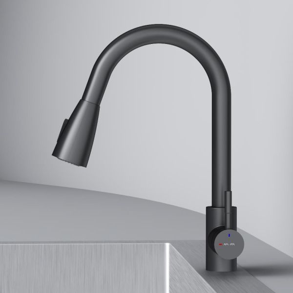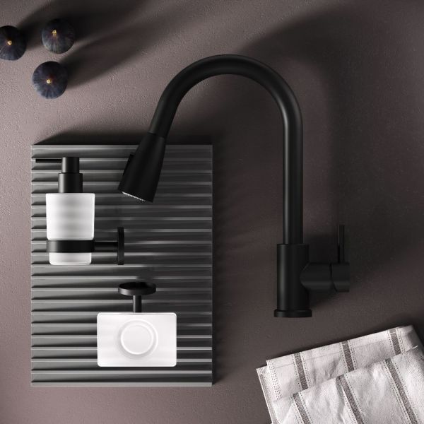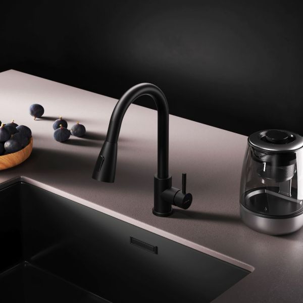 Смеситель оборудован вытяжным гибким изливом, который позволит с легкостью справится с такими задачами, как мытье раковины, наполнение больших емкостей и мытье овощей и фруктов. В зависимости от задачи вы можете легко переключаться между обычным потоком воды и режимом «душ».