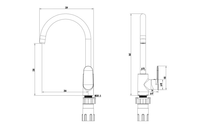 • оснащен высоким изливом, подходит для большинства кухонных моек