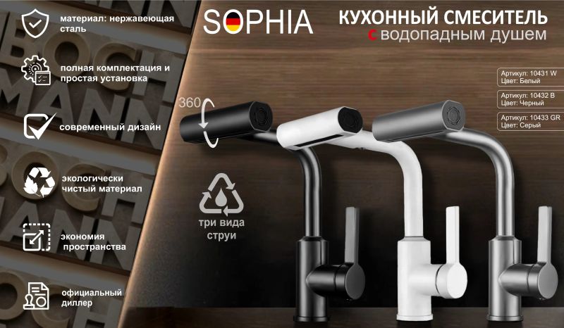 Смеситель для кухни Boch Mann Sophia GR BM10433 с водопадным душем серый купить