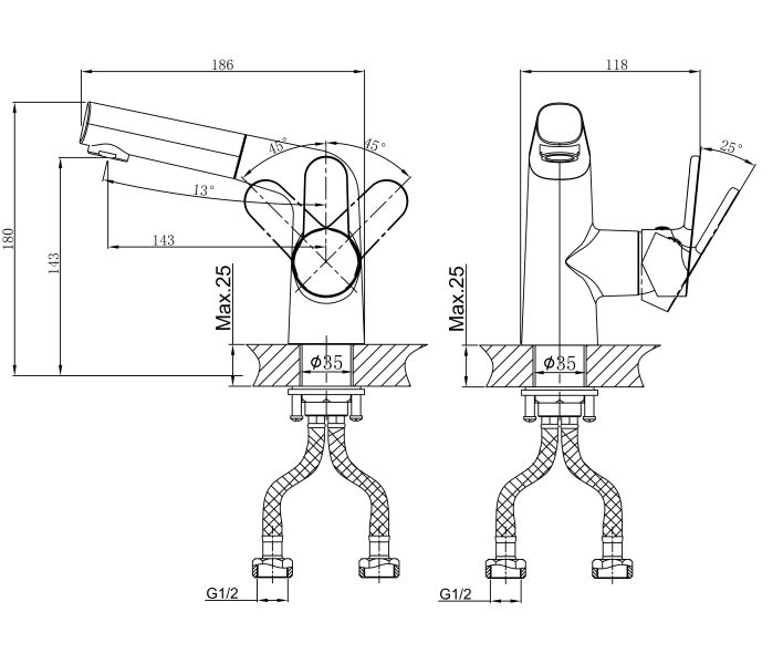 • Высота смесителя: