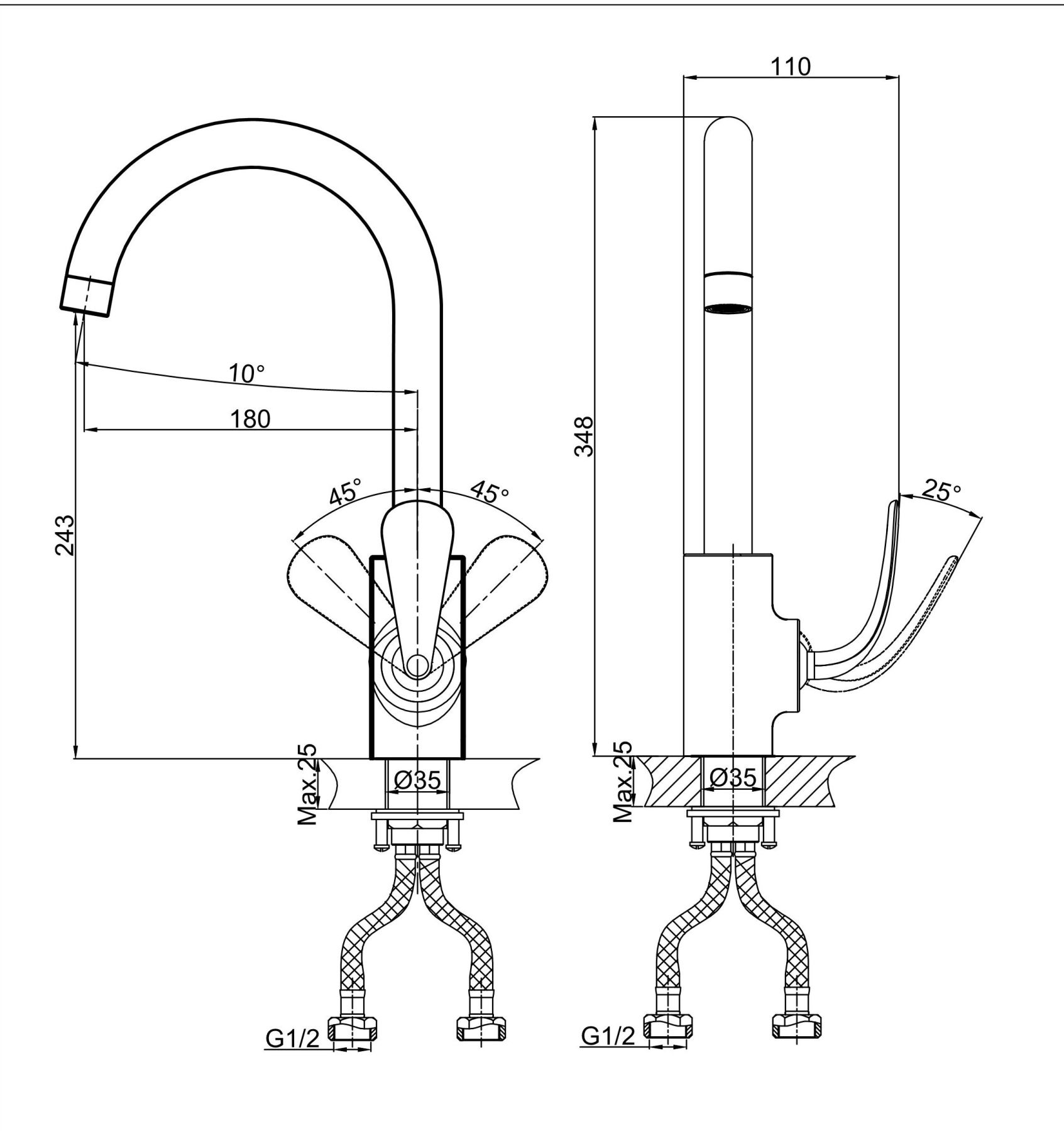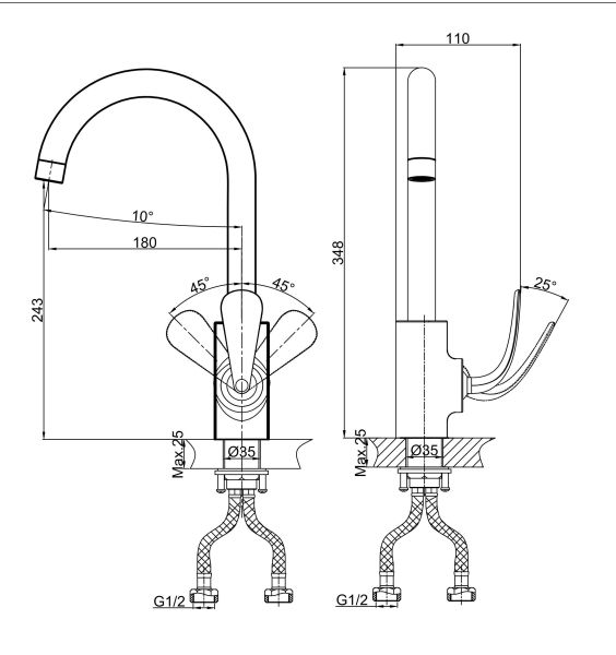 • Высота смесителя: