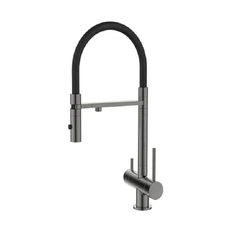 Смеситель для кухонной мойки D&K Kitchen DA1462506Grey, с подключением к фильтру, гибкий излив, цвет графит/черный