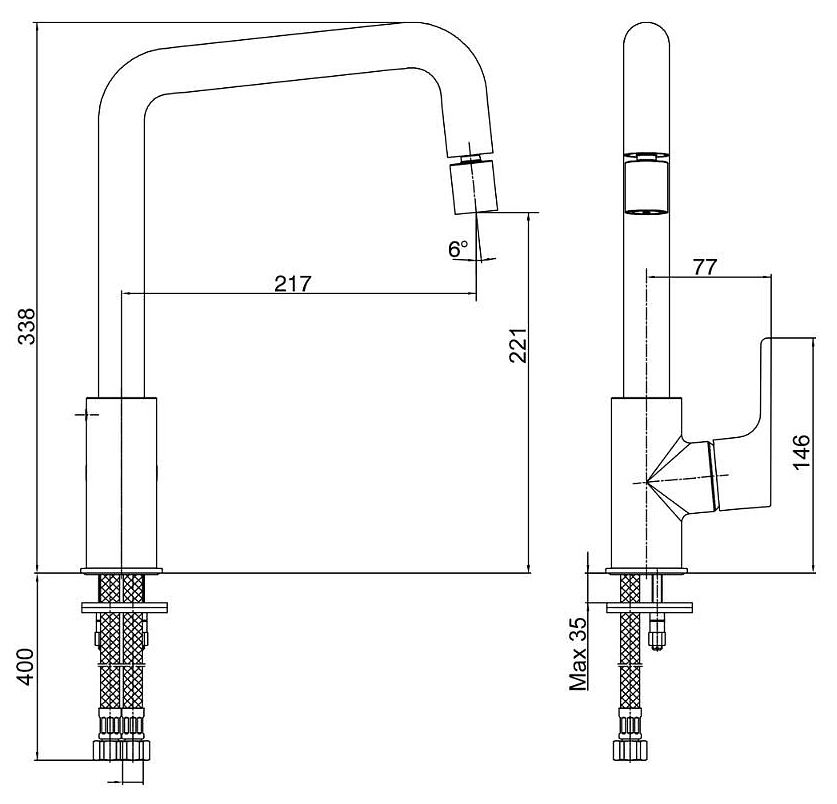 • Высота смесителя: