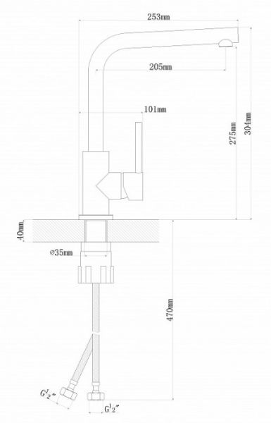 • Высота смесителя:
