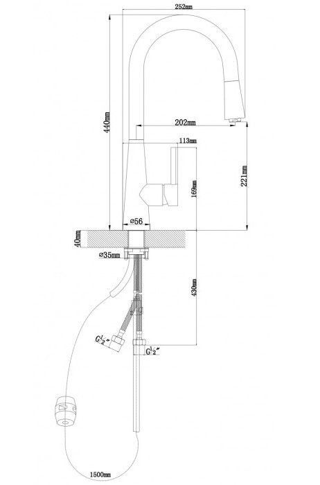 • Высота смесителя: