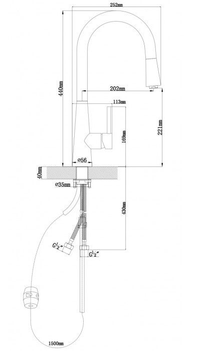 Смеситель для кухни Florentina Вита с выдвижным изливом нержавеющая сталь