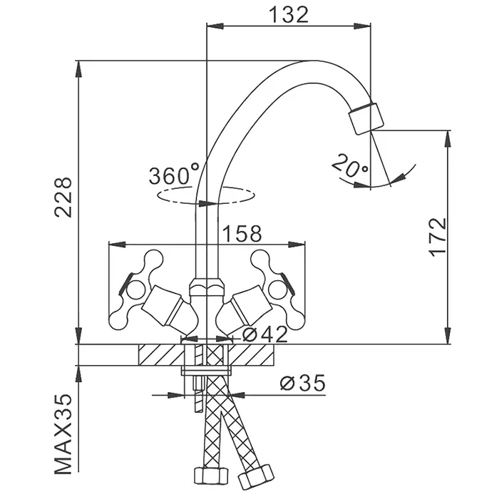 • Высота смесителя: