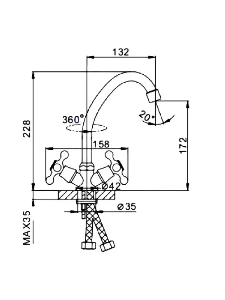 Смеситель для кухни Frap F4020 — это практичное решение для тех, кто ищет, какой смеситель выбрать для кухни с высоким изливом и надежной керамической кран-буксой. Благодаря поворотному изливу высотой 17,2 см и длиной 13,2 см, он идеально подходит для ежедневного использования, облегчая мытьё посуды и наполнение больших кастрюль. Гибкая подводка и стандарт подключения 1/2" обеспечивают совместимость с большинством кухонных коммуникаций, а классический дизайн гармонирует с любым интерьером.