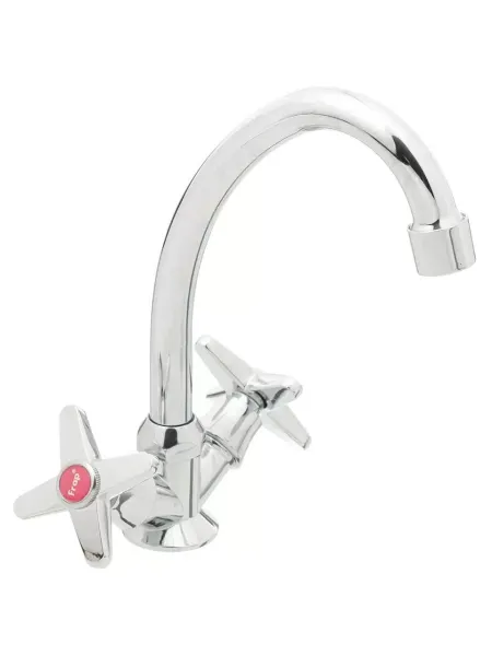 меситель для кухни Frap F4020: долговечный хром, керамическая кран-букса, высокий поворотный излив — оптимальный выбор для дома и дачи.