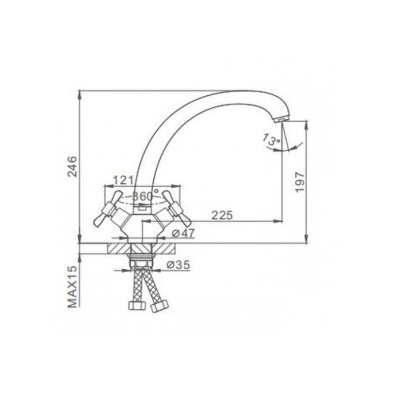 • Высота смесителя: