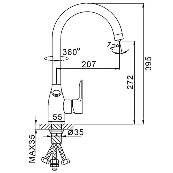 Высота смесителя:39.5