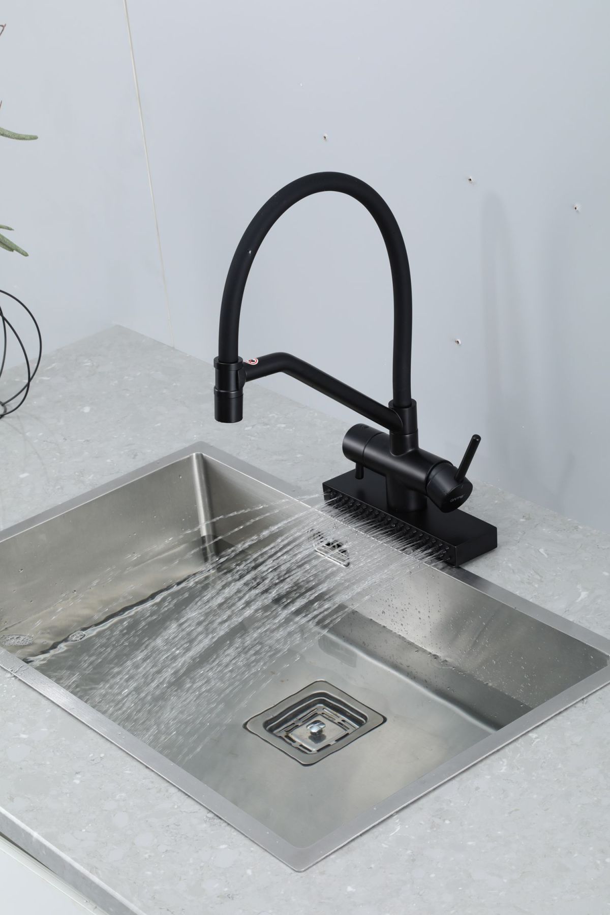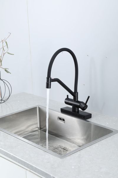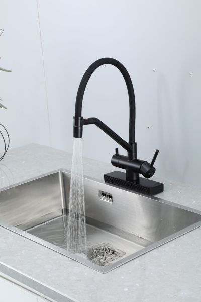 Смеситель для кухни Gappo G4098-6 с водопадом и гибким изливом чёрный