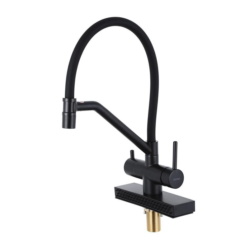 Смеситель для кухни Gappo G4098-6 с водопадом и гибким изливом чёрный купить