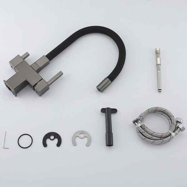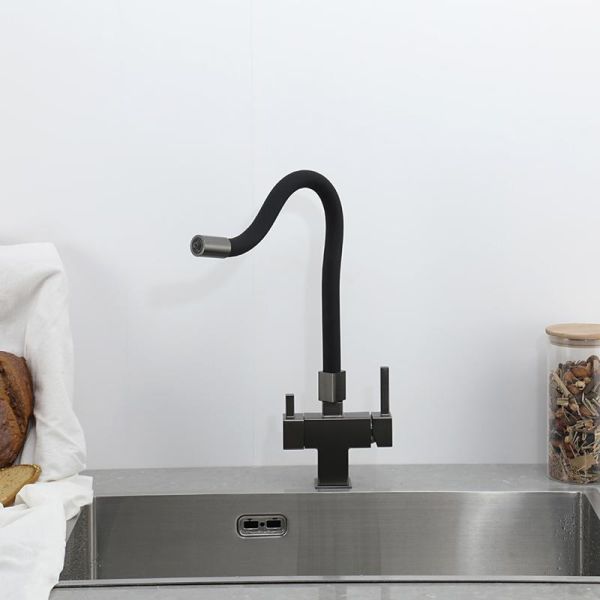 Смеситель для кухни Gappo G4395-39 с подключением фильтра питьевой воды и гибким изливом оружейная сталь