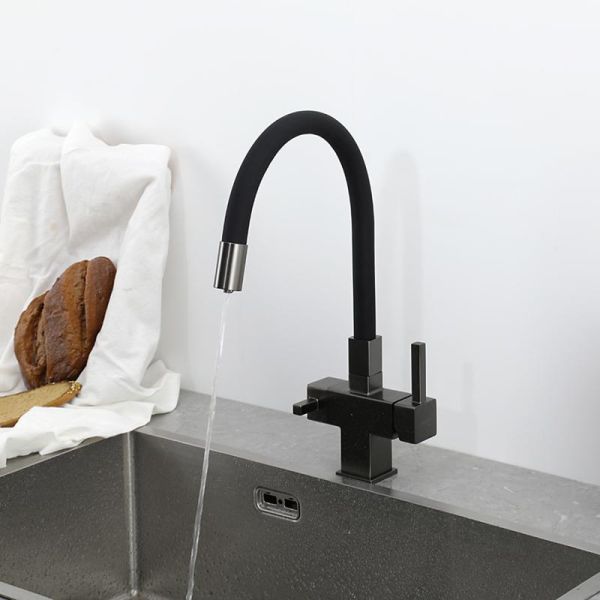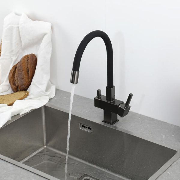Смеситель для кухни Gappo G4395-39 с подключением фильтра питьевой воды и гибким изливом оружейная сталь купить