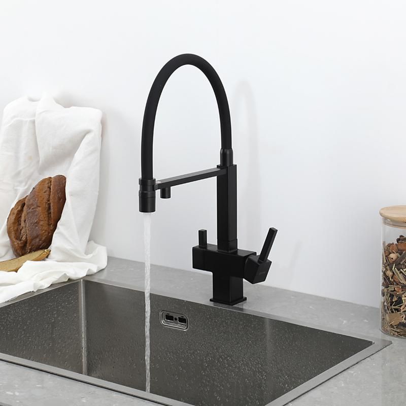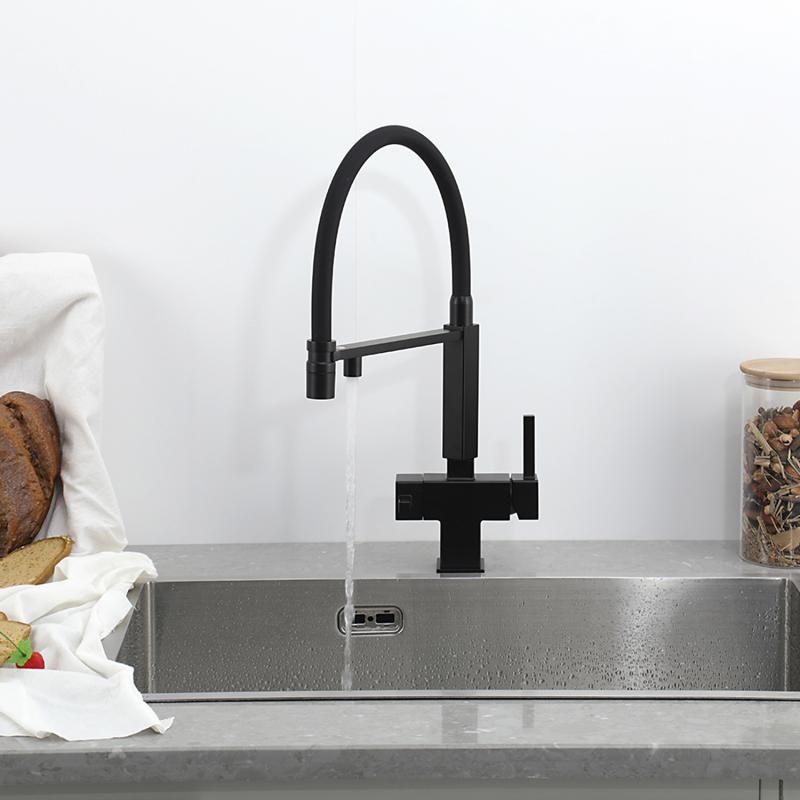 Смеситель для кухни Gappo G4395-56 с подключением фильтра питьевой воды и гибким изливом чёрный