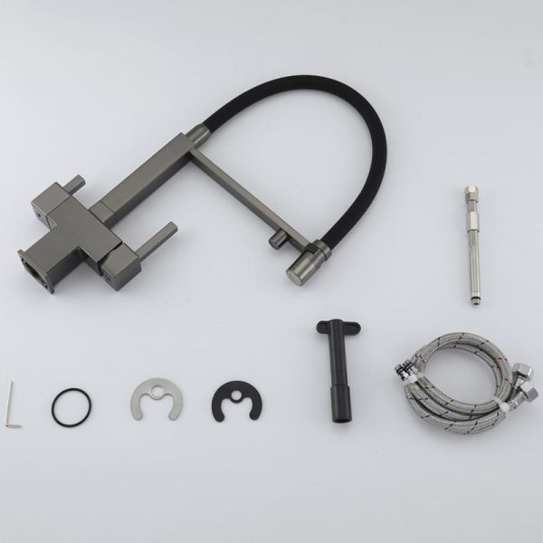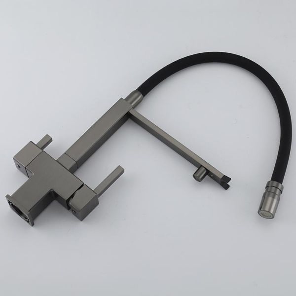 Смеситель для кухни Gappo G4395-59 с подключением фильтра питьевой воды и гибким изливом оружейная сталь/чёрный купить