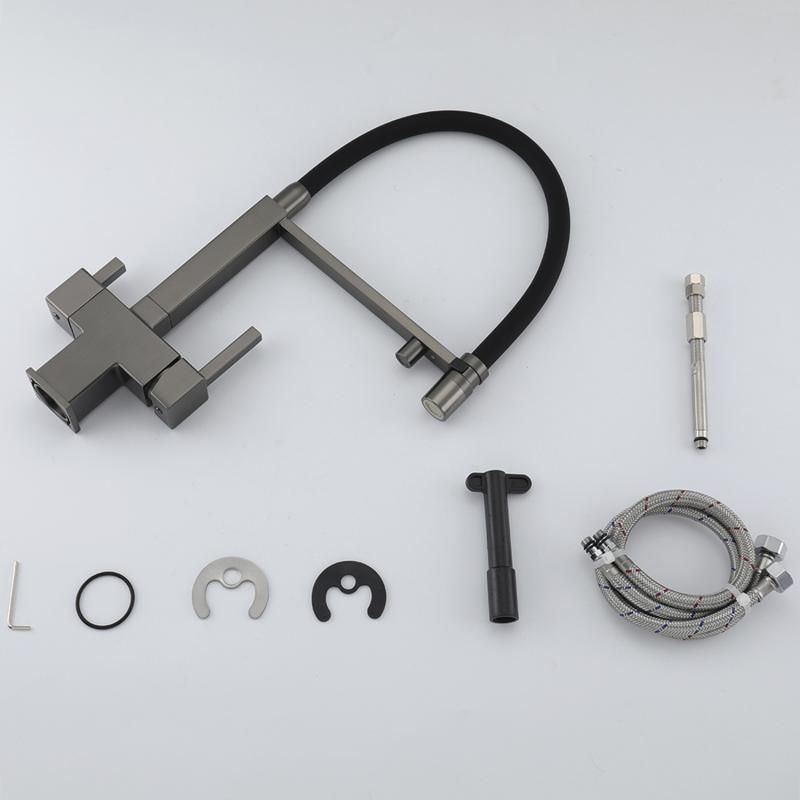Смеситель для кухни Gappo G4395-59 с подключением фильтра питьевой воды и гибким изливом оружейная сталь/чёрный