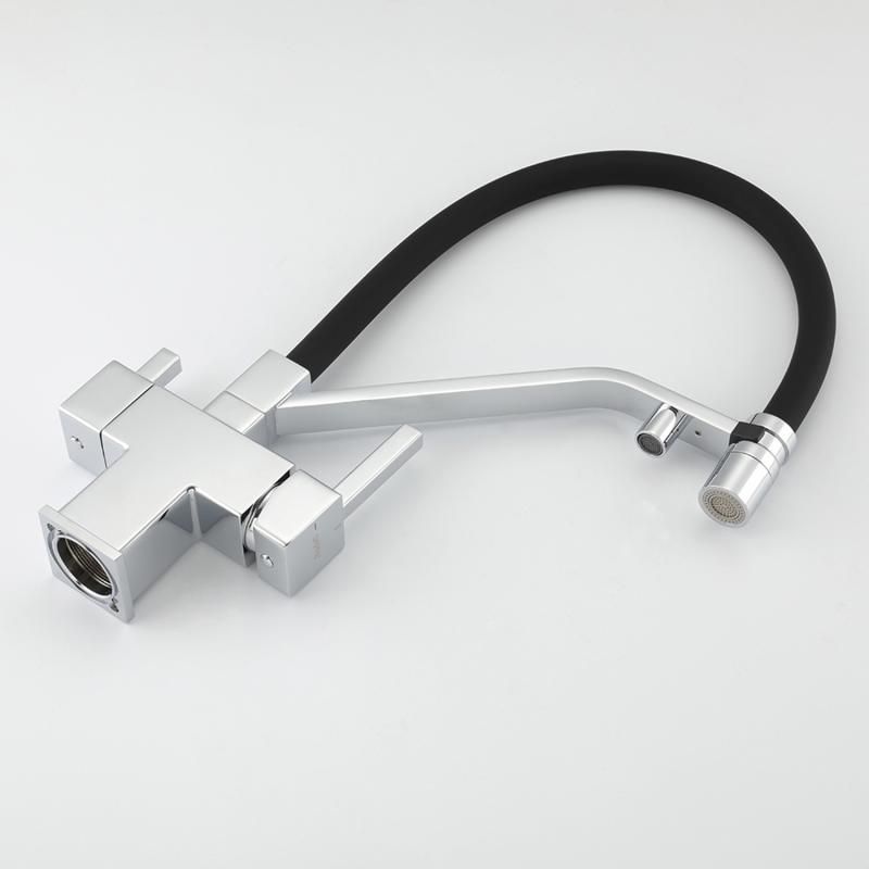 Смеситель для кухни Gappo G4395-60 с подключением фильтра питьевой воды и гибким изливом хром/чёрный