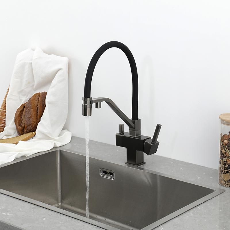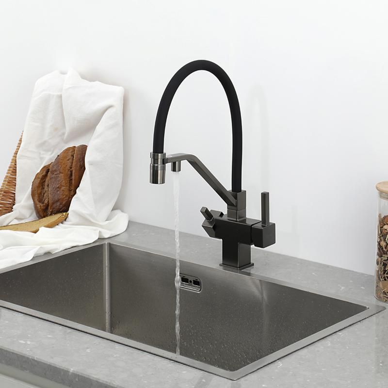 Смеситель для кухни Gappo G4395-69 с подключением фильтра питьевой воды и гибким изливом оружейная сталь/чёрный
